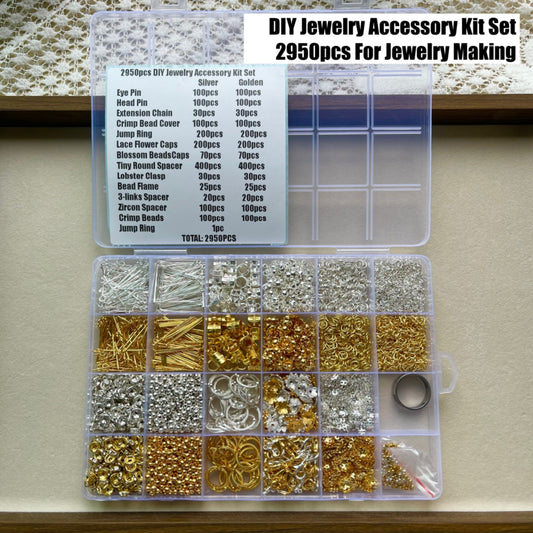 2950pcs DIY Jewelry Accessory Kit Set - Silver&Gold