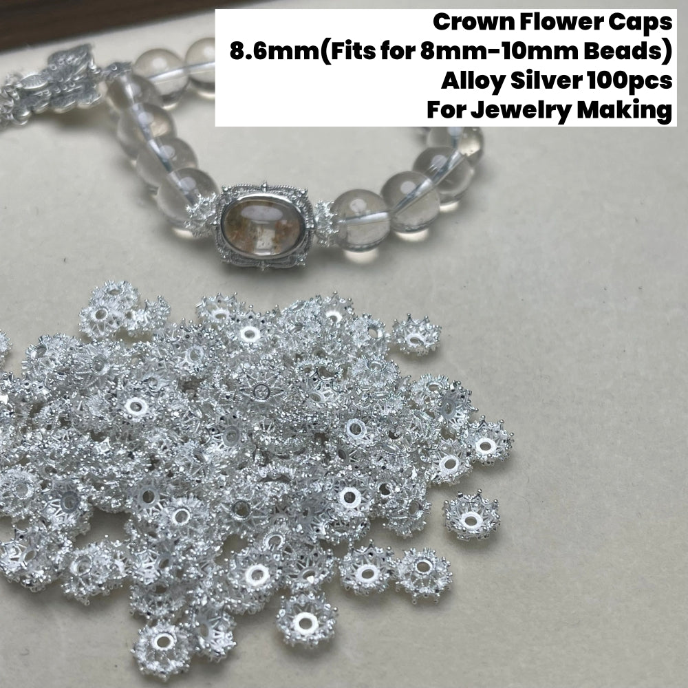 100pcs Crown Bead Cap Alloy Spacers Silver